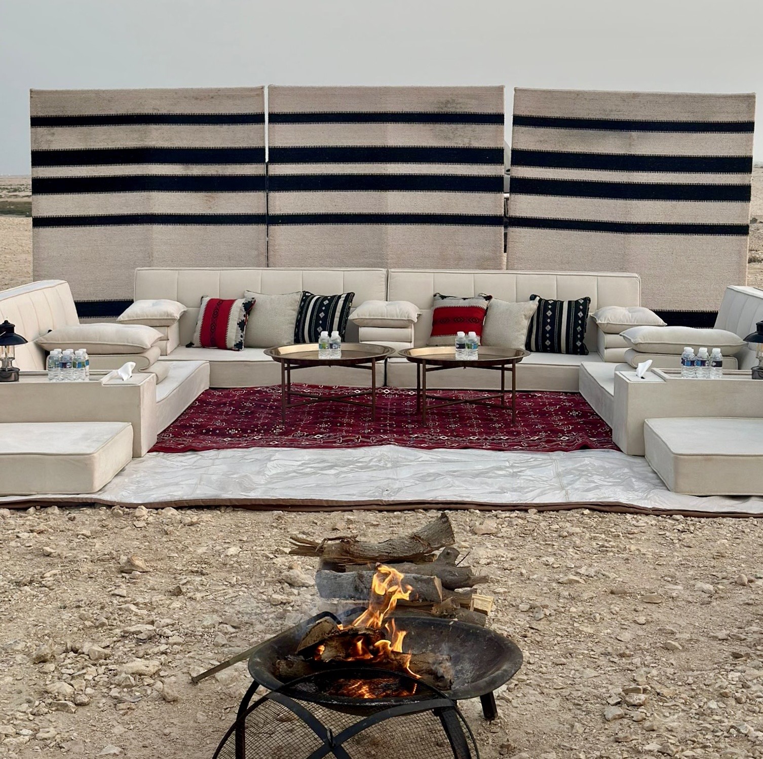 Step into the beauty of the desert with Kashtah Lite, a cozy and affordable 5 hour camping experience designed for 15–17 guests. Set against the natural backdrop of Qatar’s dunes, this package offers a traditional majlis-style setup with comfortable floor seating, Arabic carpets, basic lighting, and shade tents perfect for intimate gatherings, family bonding, or relaxed evenings with friends.